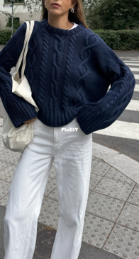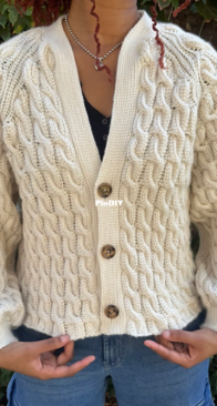 Tyra Sweater is an oversized pullover inspired by the classic Aran sweater, featuring bolddiagonal cables and strong texture contrast between reverse stockinette and cables. Themodern yet timeless sil ...