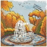 Cross stitch design "In the Park by the Fountain" by Anastasia Pruss. Recommended fabric is 27 or 32 ct white evenweave. DMC floss. Chart includes two versions: black and white and color with symbols. ...